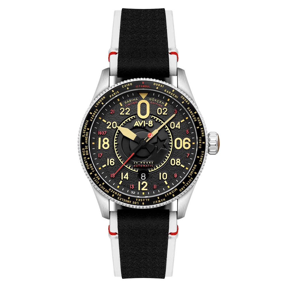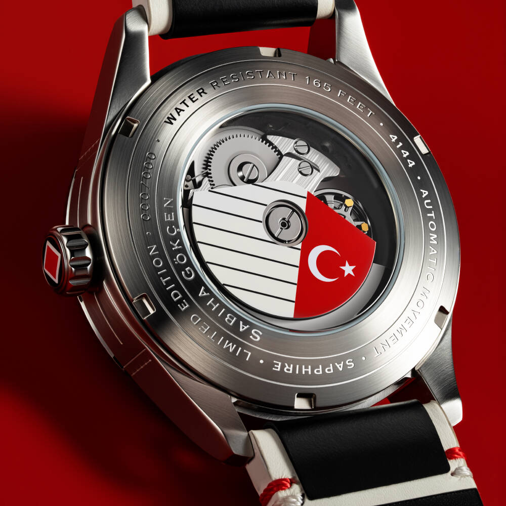 • Kasa Çapı: 42 mm - Kasa Şekli: Yuvarlak - Kasa Materyali: Çelik - Kasa Rengi: Metalik Gri - Kordon Materyali: Deri - Kordon Rengi: Siyah/Beyaz- Kadran Rengi: Siyah - Kadran Işığı: Yok - Taş: Yok - Çalışma Şekli: Analog - Teknolojisi: Otomatik - Takvim: Var - Kronometre: Yok - Alarm: Yok - Cam Özelliği: Safir - Kasa Kalınlığı: 14,5 mm - Lug To Lug: 48 mm - Kordon Genişliği: 22 mm - Yedek Tekstil Kayış - 199 Adet Sınırlı Sayıda Üretim - Yaklaşık Güç Rezervi 40-42 Saat - Su Geçirmezlik: 5 ATM - Garanti Süresi: 2 YIL - Cinsiyet: Erkek - Not: Bu modelde kullanılan mekanizma, standart Seiko NH34 baz alınarak özel olarak modifiye edilmiştir. Klasik saatlerde akrep kolu 12 saatte bir tur atarken, bu modelde akrep kolu 24 saatte bir tam tur atacak şekilde tasarlanmıştır. Bu özellik sayesinde saat, 24 saatlik zaman dilimini tek turda gösterir ve farklı bir kullanım deneyimi sunar. Bu geliştirme Sabiha Gökçen modellerine özel tasarlanmıştır.