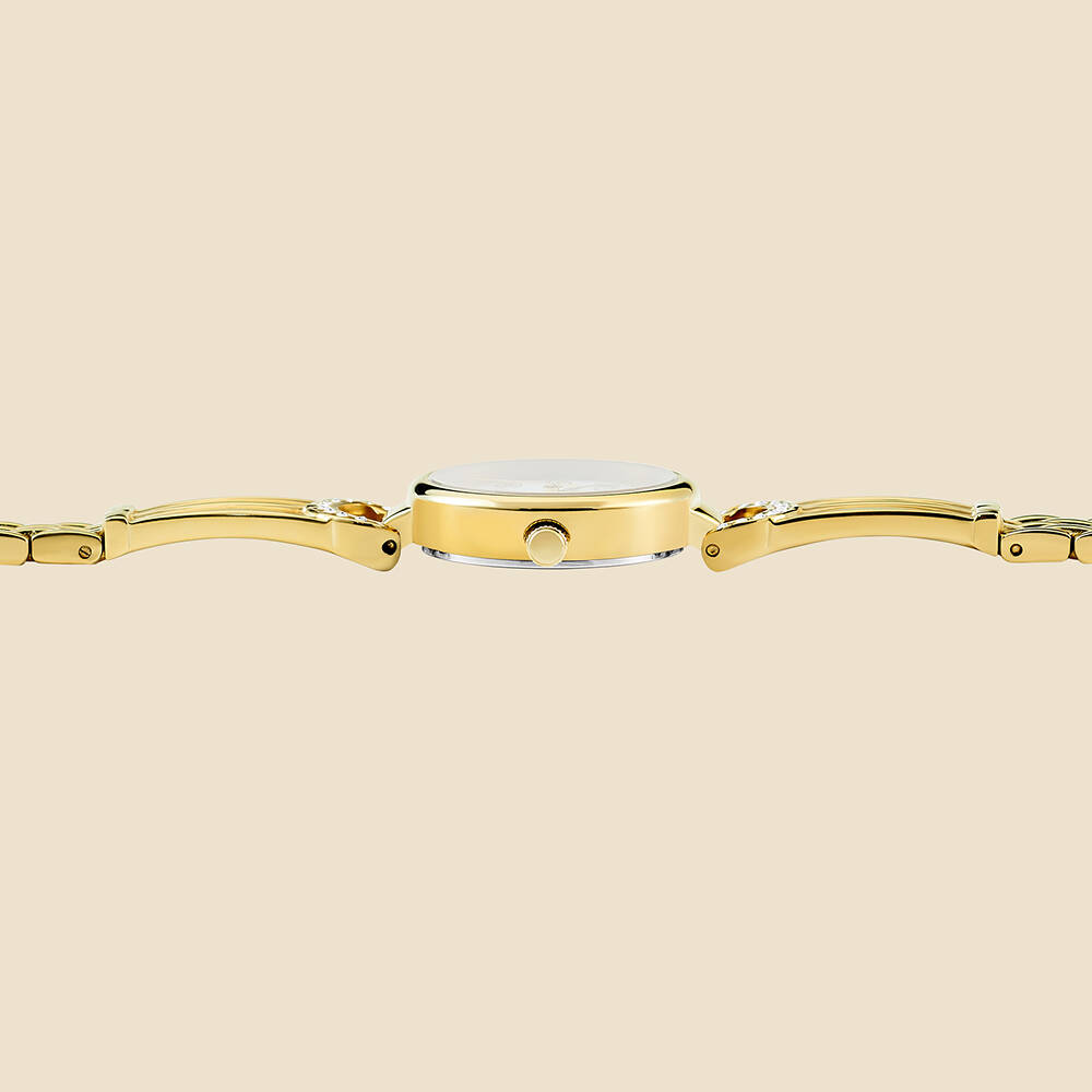 Kasa Çapı: 24,5x29,1 mm - Kasa Şekli: Yuvarlak - Kasa Materyali: Çelik - Kasa Rengi: Altın - Kordon Materyali: Çelik - Kordon Rengi: Altın- Kadran Rengi: Beyaz - Kadran Işığı: Yok - Taş: Var - Çalışma Şekli: Analog - Teknolojisi: Quartz - Takvim: Yok - Kronometre: Yok - Alarm: Yok - Cam Özelliği: Mineral - Özellik: - Su Geçirmezlik: 5 ATM - Garanti Süresi: 2 Yıl - Cinsiyet: Kadın