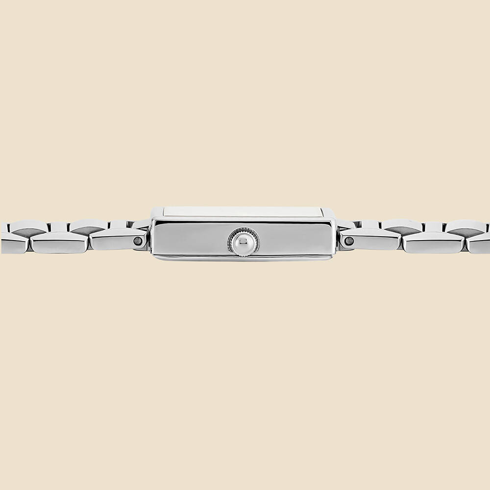 Kasa Çapı: 23 x 30 mm - Kasa Şekli: Diktörtgen - Kasa Materyali: Çelik - Kasa Rengi: Gümüş - Kordon Materyali: Çelik - Kordon Rengi: Gümüş- Kadran Rengi: Beyaz - Kadran Işığı: Yok - Taş: Yok - Çalışma Şekli: Analog - Teknolojisi: Quartz - Takvim: Yok - Kronometre: Yok - Alarm: Yok - Cam Özelliği: Mineral - Özellik: - Su Geçirmezlik: 5 ATM - Garanti Süresi: 2 Yıl - Cinsiyet: Kadın