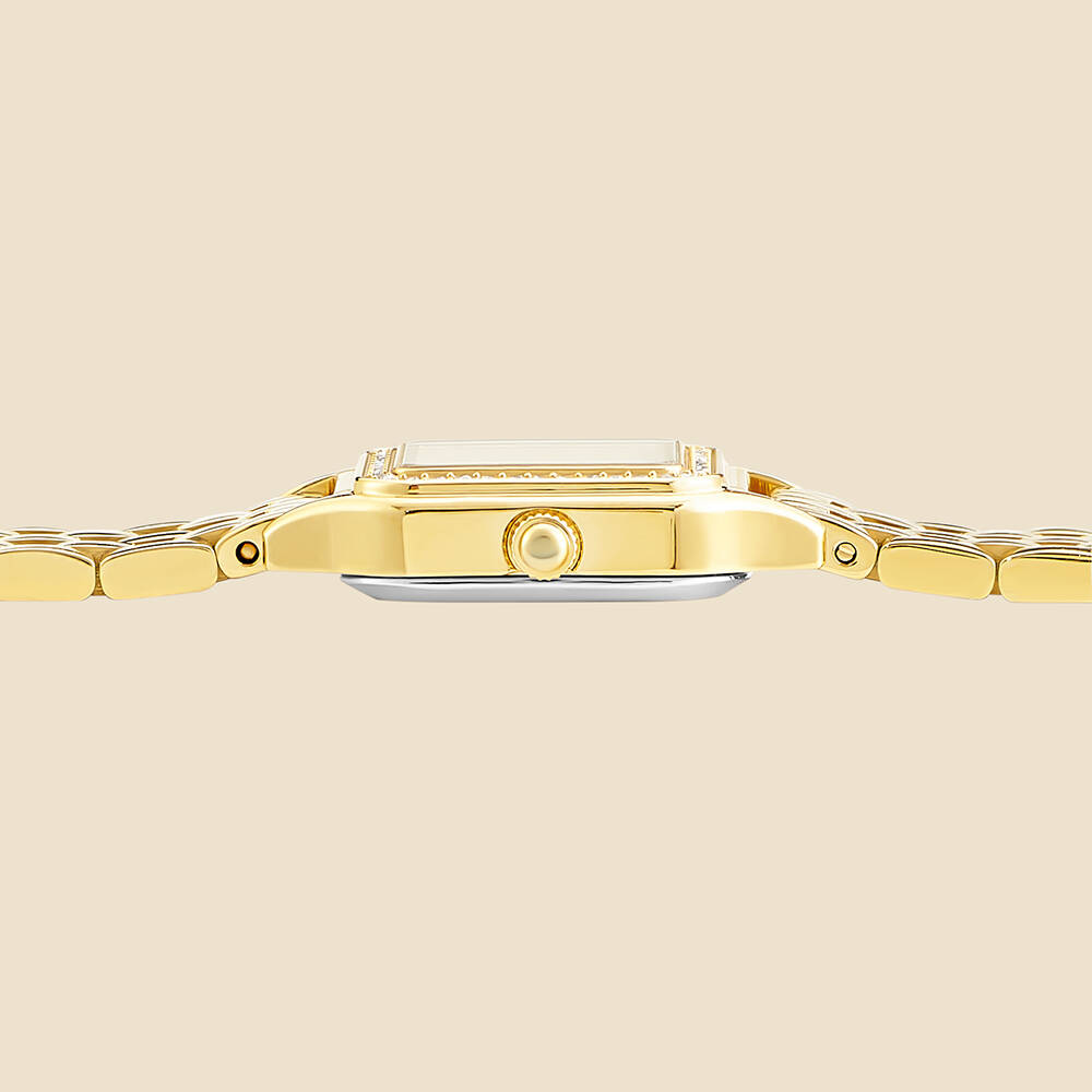Kasa Çapı: 21 mm - Kasa Şekli: Kare - Kasa Materyali: Çelik - Kasa Rengi: Altın - Kordon Materyali: Çelik - Kordon Rengi: Altın- Kadran Rengi: Sedef - Kadran Işığı: Yok - Taş: Var - Çalışma Şekli: Analog - Teknolojisi: Quartz - Takvim: Yok - Kronometre: Yok - Alarm: Yok - Cam Özelliği: Mineral - Özellik: - Su Geçirmezlik: 5 ATM - Garanti Süresi: 2 Yıl - Cinsiyet: Kadın