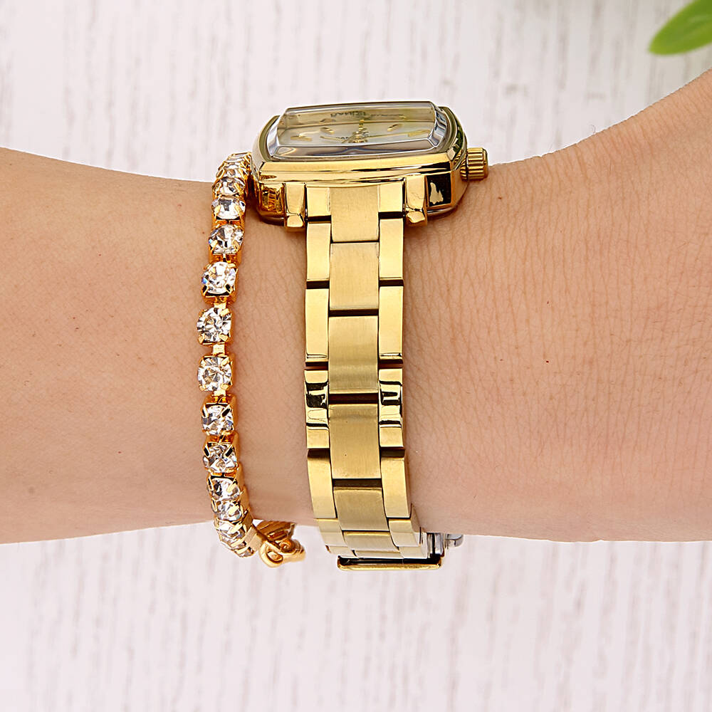 Kasa Çapı: 23 mm - Kasa Şekli: Kare - Kasa Materyali: Metal - Kasa Rengi: Altın Rengi - Kordon Materyali: Çelik - Kordon Rengi: Altın Rengi- Kadran Rengi: Gümüş Tonu - Kadran Işığı: Yok - Taş: Yok - Çalışma Şekli: Analog - Teknolojisi: Quartz - Takvim: Yok - Kronometre: Yok - Alarm: Yok - Cam Özelliği: Mineral - Özellik: Bileklik Hediyeli - Su Geçirmezlik: 3 ATM - Garanti Süresi: 2 YIL - Cinsiyet: Kadın
