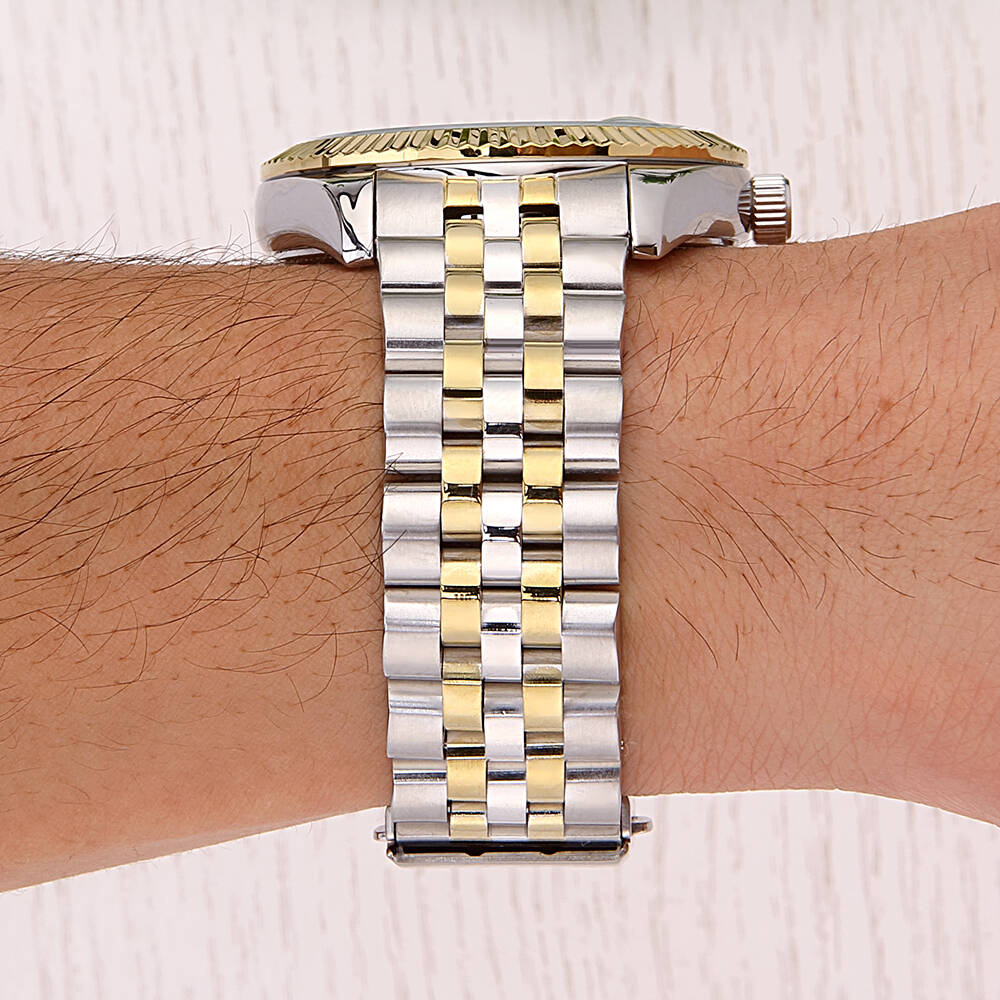 Kasa Çapı: 42 mm - Kasa Şekli: Yuvarlak - Kasa Materyali: Metal - Kasa Rengi: Metalik Gri - Kordon Materyali: Çelik - Kordon Rengi: Metalik Gri/Altın Rengi- Kadran Rengi: Yeşil - Kadran Işığı: Yok - Taş: Yok - Çalışma Şekli: Analog - Teknolojisi: Quartz - Takvim: Var - Kronometre: Yok - Alarm: Yok - Cam Özelliği: Mineral - Özellik: - Su Geçirmezlik: 3 ATM - Garanti Süresi: 2 YIL - Cinsiyet: Erkek