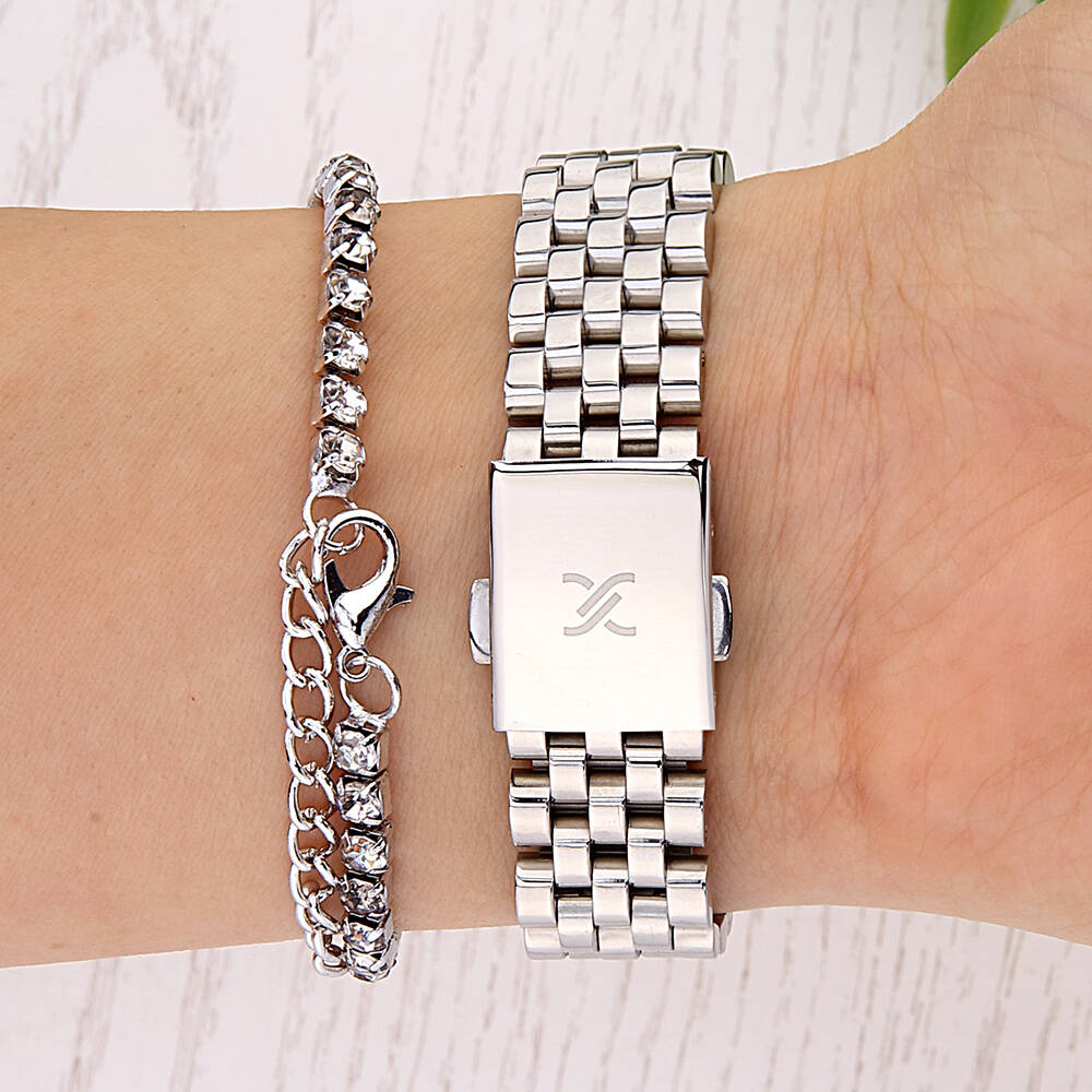 Kasa Çapı: 33 mm - Kasa Şekli: Yuvarlak - Kasa Materyali: Metal - Kasa Rengi: Metalik Gri - Kordon Materyali: Çelik - Kordon Rengi: Metalik Gri- Kadran Rengi: Gümüş Tonu - Kadran Işığı: Yok - Taş: Var - Çalışma Şekli: Analog - Teknolojisi: Quartz - Takvim: Yok - Kronometre: Yok - Alarm: Yok - Cam Özelliği: Mineral - Özellik: Bileklik Hediyeli - Su Geçirmezlik: 3 ATM - Garanti Süresi: 2 YIL - Cinsiyet: Kadın