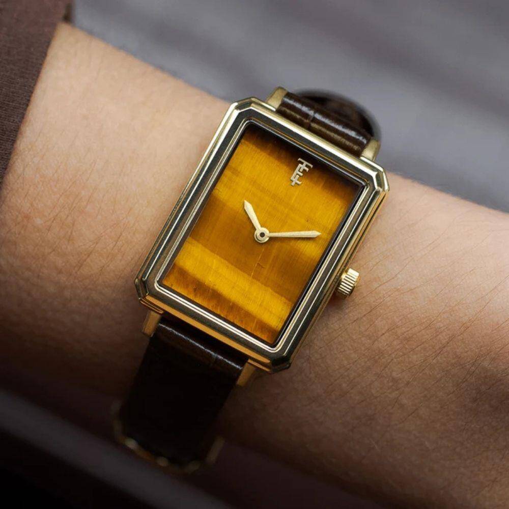Kasa Çapı: 23.20 X 28 .70 mm - Kasa Şekli: Dikdörtgen - Kasa Materyali: Çelik - Kasa Rengi: Altın - Kordon Materyali: Deri - Kordon Rengi: Kahverengi- Kadran Rengi: Kaplan Gözü - Kadran Işığı: Yok - Taş: Yok - Çalışma Şekli: Analog - Teknolojisi: Quarzt - Takvim: Yok - Kronometre: Yok - Alarm: Yok - Cam Özelliği: Mineral - Özellik: Saat Ağırlığı: 42 Gr -Kasa Kalınlığı: 6.30 mm - Su Geçirmezlik: 3 ATM - Garanti Süresi: 2 YIL - Cinsiyet: Kadın