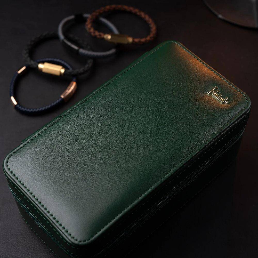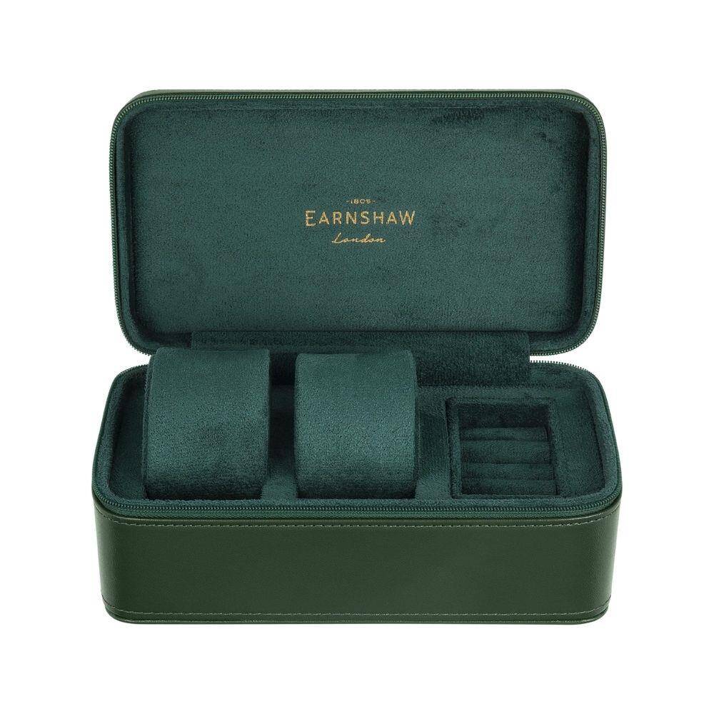 MALZEME: Hakiki Deri - ASTAR MALZEMESİ: Süet - RENK: Koyu Yeşil - ASTAR RENGİ: Yeşil - BOYUT: 195mm x 105mm x 80mm - KAPASİTE: Mücevher Eklentili İki Saat - AÇIKLAMA: Thomas Earnshaw'ın birinci sınıf malzemelerin olağanüstü dayanıklılıkla buluştuğu saat kutularıyla saat koleksiyonunuzu yükseltin. Lüks, işlevsellik ve stilin mükemmel karışımını deneyimleyin, değer verdiğiniz saatlerinizin iyi korunmasını ve en zarif şekilde sergilenmesini sağlayın.
