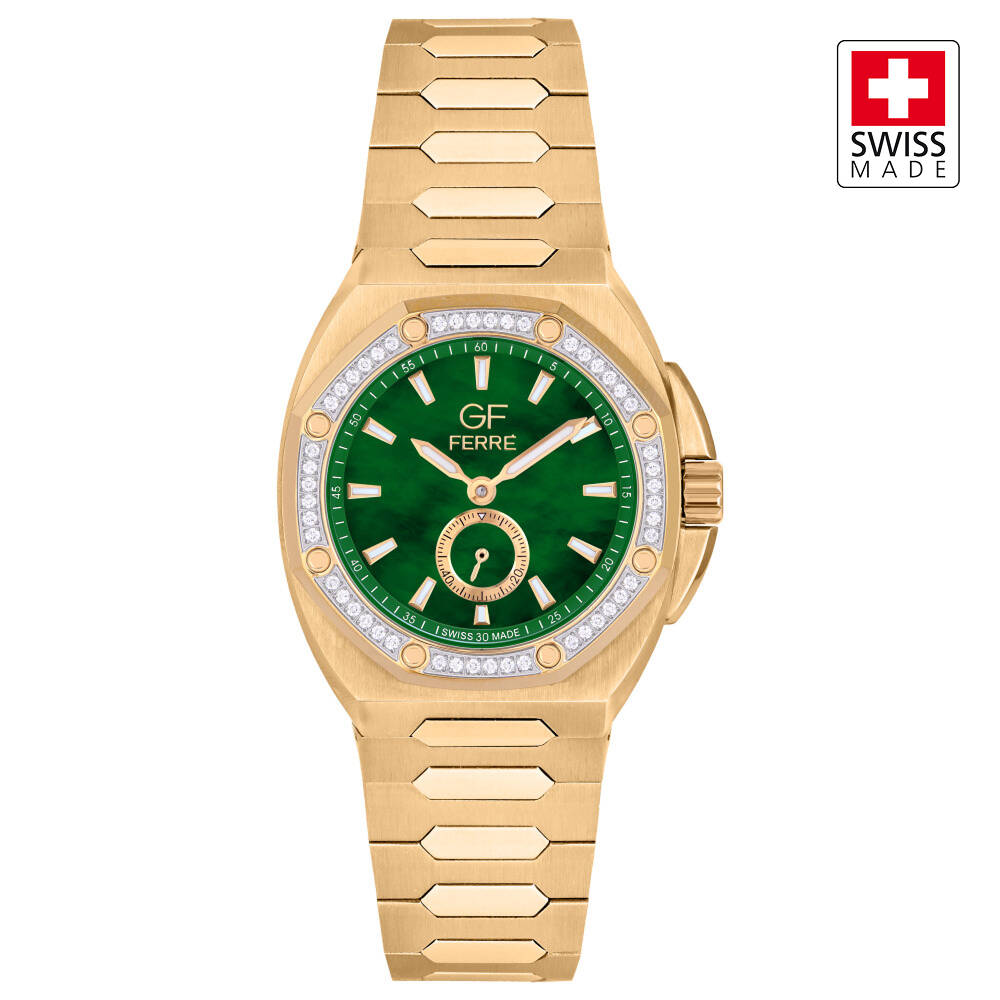 Kasa Çapı: 30 mm - Kasa Şekli: Yuvarlak - Kasa Materyali: Çelik - Kasa Rengi: Altın - Kordon Materyali: Çelik - Kordon Rengi: Altın- Kadran Rengi: Yeşil - Kadran Işığı: Yok - Taş: Var - Çalışma Şekli: Analog - Teknolojisi: Quartz - Takvim: Var - Kronometre: Yok - Alarm: Yok - Cam Özelliği: Safir - Özellik: - Su Geçirmezlik: 5 ATM - Garanti Süresi: 2 Yıl - Cinsiyet: Kadın