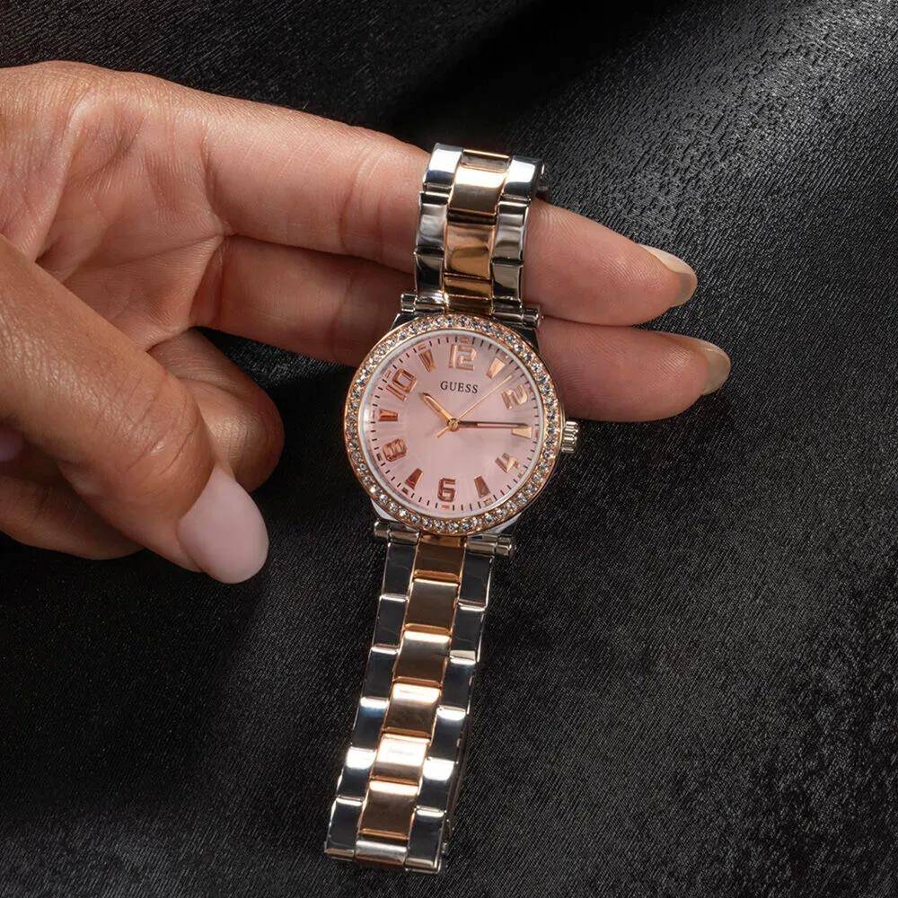 Kasa Çapı: 32 mm - Kasa Şekli: Yuvarlak - Kasa Materyali: Çelik - Kasa Rengi: Gümüş - Kordon Materyali: Çelik - Kordon Rengi: Gümüş / Rose Gold- Kadran Rengi: Pembe - Kadran Işığı: Yok - Taş: Var - Çalışma Şekli: Analog - Teknolojisi: Quartz - Takvim: Yok - Kronometre: Yok - Alarm: Yok - Cam Özelliği: Mineral - Özellik: Ağırlık: 77 Gr - Kordon Uzunluğu: 19 cm - Kordon Genişliği: 16 mm - Kasa Kalinlik: 8 mm - Su Geçirmezlik: 3 ATM - Garanti Süresi: 2 YIL - Cinsiyet: Kadın