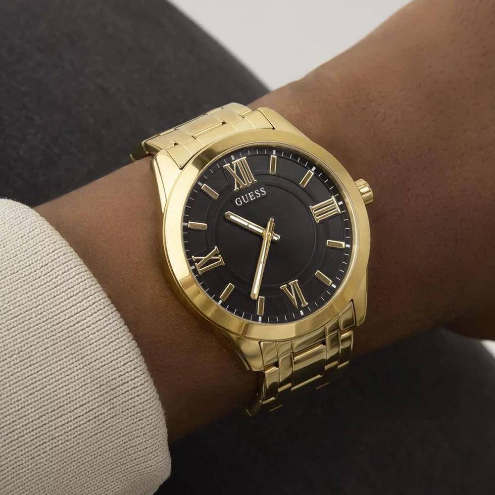 Kasa Çapı: 44 mm - Kasa Şekli: Yuvarlak - Kasa Materyali: Çelik - Kasa Rengi: Altın - Kordon Materyali: Çelik - Kordon Rengi: Altın- Kadran Rengi: Siyah - Kadran Işığı: Yok - Taş: Yok - Çalışma Şekli: Analog - Teknolojisi: Quartz - Takvim: Yok - Kronometre: Yok - Alarm: Yok - Cam Özelliği: Mineral - Özellik: Kordon Uzunluğu: 20 cm - Kordon Genişliği: 22 mm - Kasa Kalinlik: 10 mm - Su Geçirmezlik: 5 ATM - Garanti Süresi: 2 YIL - Cinsiyet: Erkek