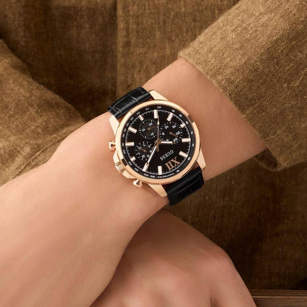 Kasa Çapı: 44 mm - Kasa Şekli: Yuvarlak - Kasa Materyali: Çelik - Kasa Rengi: Rose Gold - Kordon Materyali: Deri - Kordon Rengi: Siyah- Kadran Rengi: Siyah - Kadran Işığı: Yok - Taş: Yok - Çalışma Şekli: Analog - Teknolojisi: Quartz - Takvim: Var - Kronometre: Yok - Alarm: Yok - Cam Özelliği: Mineral - Özellik: Kordon Genişliği: 22 mm - Su Geçirmezlik: 5 ATM - Garanti Süresi: 2 YIL - Cinsiyet: Erkek