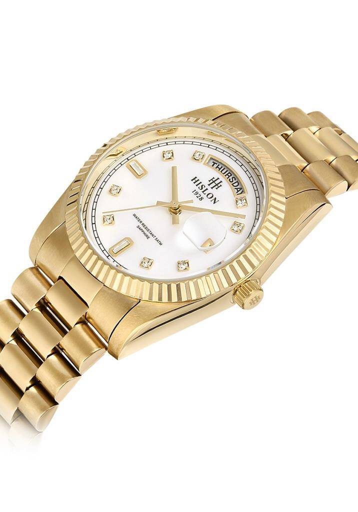 Kasa Çapı: 36 mm - Kasa Şekli: Yuvarlak - Kasa Materyali: Paslanmaz Çelik - Kasa Rengi: Gold - Kordon Materyali: Paslanmaz Çelik - Kordon Rengi: Gold- Kadran Rengi: Sedefli - Beyaz - Kasa Kalınlık: 9.8 mm - Kordon Genişliği: 20 mm - Kordon Kilit: Kilitli Klips - Teknolojisi: Quartz - Takvim: Tarih & Gün - Kronometre: Yok - Cam Şekli: Bombeli - Cam Özelliği: Safir Kaplama - Koleksiyon: Classic Queen Collection - Su Geçirmezlik: 5 ATM - Garanti Süresi: 2 Yıl - Cinsiyet: Kadın