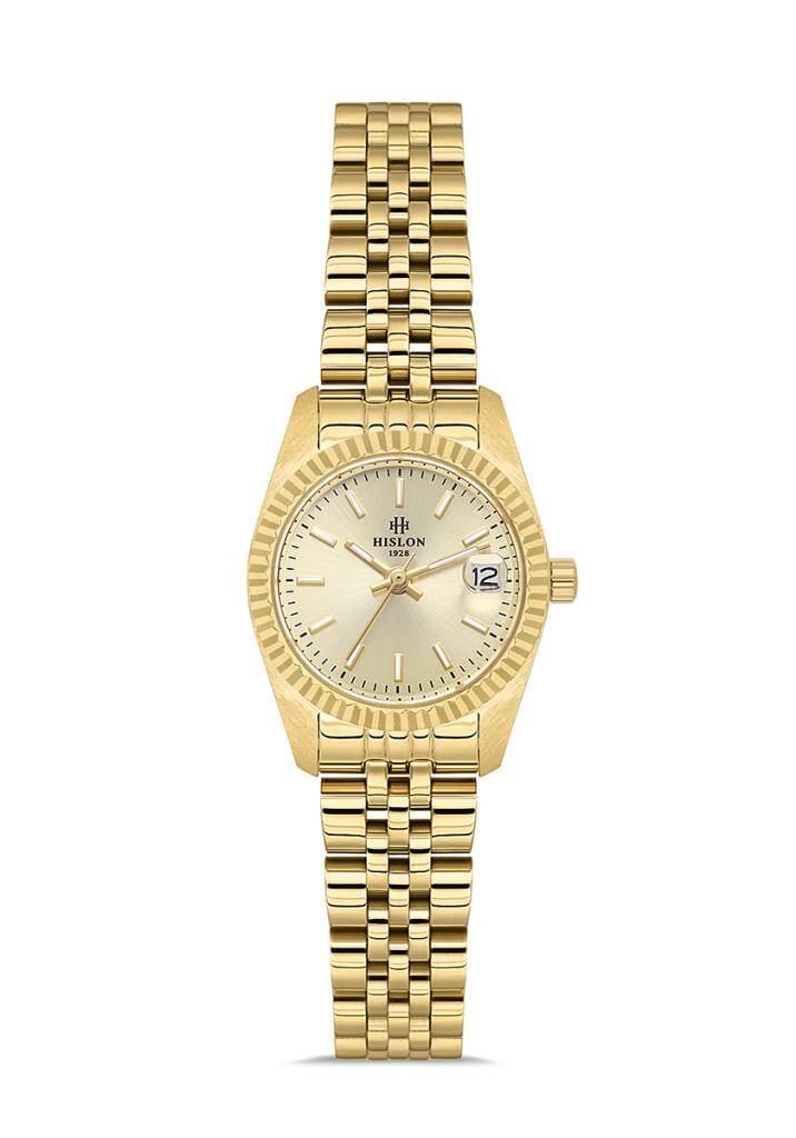 Kasa Çapı: 24 mm - Kasa Şekli: Yuvarlak - Kasa Materyali: Paslanmaz Çelik - Kasa Rengi: Gold - Kordon Materyali: Paslanmaz Çelik - Kordon Rengi: Gold- Kadran Rengi: Gold - Kasa Kalınlık: - Kordon Genişliği: 12 mm - Kordon Kilit: Kelebek Klips - Teknolojisi: Quartz - Takvim: Tarih - Kronometre: Yok - Cam Şekli: Kesme - Cam Özelliği: Safir Kaplama - Koleksiyon: Classic Queen Collection - Su Geçirmezlik: 5 ATM - Garanti Süresi: 2 Yıl - Cinsiyet: Kadın