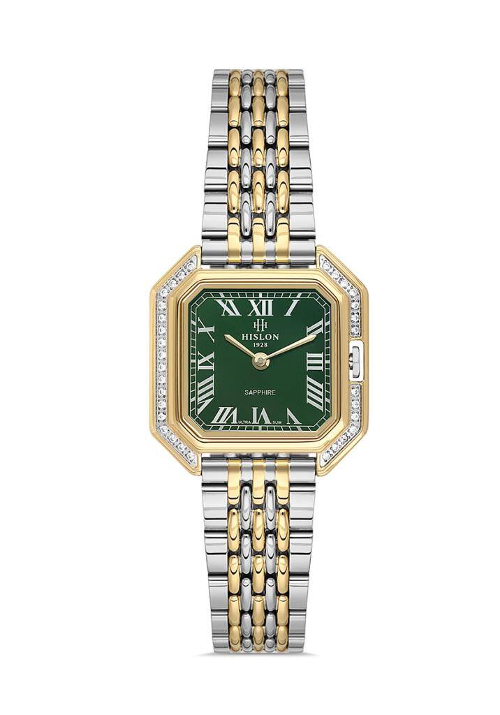 Kasa Çapı: 27 x 28 mm - Kasa Şekli: Köşeli - Kasa Materyali: Paslanmaz Çelik - Kasa Rengi: Çelik - Gold - Kordon Materyali: Paslanmaz Çelik - Kordon Rengi: Çelik - Gold- Kadran Rengi: Yeşil - Kasa Kalınlık: - Kordon Genişliği: 14 mm - Kordon Kilit: Kelebek Klips - Teknolojisi: Quartz - Takvim: Yok - Kronometre: Yok - Cam Şekli: Kesme - Cam Özelliği: Safir - Koleksiyon: Classic Queen Collection - Su Geçirmezlik: 3 ATM - Garanti Süresi: 2 Yıl - Cinsiyet: Kadın