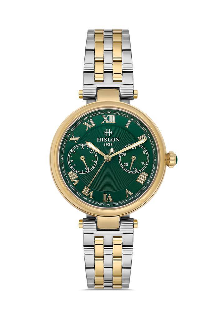 • Kasa Çapı: 32 mm - Kasa Şekli: Yuvarlak - Kasa Materyali: Paslanmaz Çelik - Kasa Rengi: Çelik - Gold - Kordon Materyali: Paslanmaz Çelik - Kordon Rengi: Çelik - Gold- Kadran Rengi: Sedefli - Yeşil - Kasa Kalınlık: - Kordon Genişliği: 14 mm - Kordon Kilit: Kelebek Klips - Teknolojisi: Quartz - Takvim: Tarih & Gün - Kronometre: Yok - Cam Şekli: Düz - Cam Özelliği: Safir Kaplama - Koleksiyon: Date Queen Collection - Su Geçirmezlik: 5 ATM - Garanti Süresi: 2 Yıl - Cinsiyet: Kadın