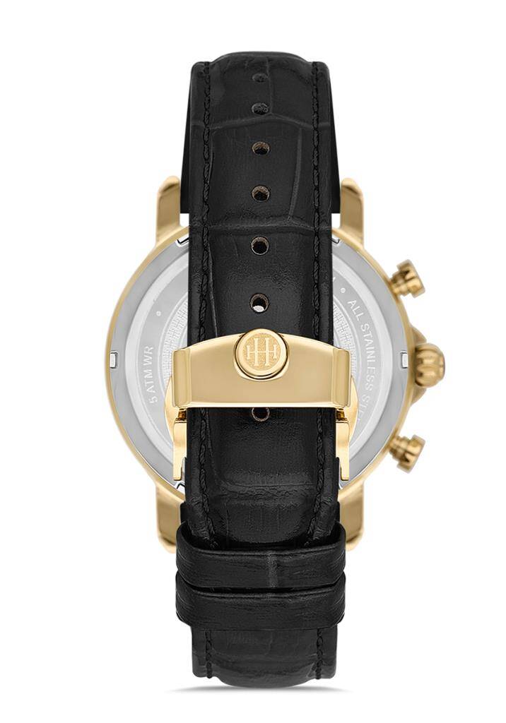 Kasa Çapı: 43 mm - Kasa Şekli: Yuvarlak - Kasa Materyali: Paslanmaz Çelik - Kasa Rengi: Gold - Kordon Materyali: Gerçek Deri - Kordon Rengi: Siyah- Kadran Rengi: Gold - Kasa Kalınlık: - Kordon Genişliği: 22 mm - Kordon Kilit: Kelebek Klips - Teknolojisi: Quartz - Takvim: Yok - Kronometre: Var - Cam Şekli: Bombeli - Cam Özelliği: Mineral - Koleksiyon: Timeless Collection - Su Geçirmezlik: 5 ATM - Garanti Süresi: 2 Yıl - Cinsiyet: Erkek