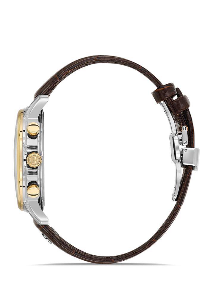 Kasa Çapı: 43 mm - Kasa Şekli: Yuvarlak - Kasa Materyali: Paslanmaz Çelik - Kasa Rengi: Çelik - Gold - Kordon Materyali: Gerçek Deri - Kordon Rengi: Kahverengi- Kadran Rengi: Beyaz - Kasa Kalınlık: - Kordon Genişliği: 22 mm - Kordon Kilit: Kelebek Klips - Teknolojisi: Quartz - Takvim: Yok - Kronometre: Var - Cam Şekli: Bombeli - Cam Özelliği: Mineral - Koleksiyon: Timeless Collection - Su Geçirmezlik: 5 ATM - Garanti Süresi: 2 Yıl - Cinsiyet: Erkek