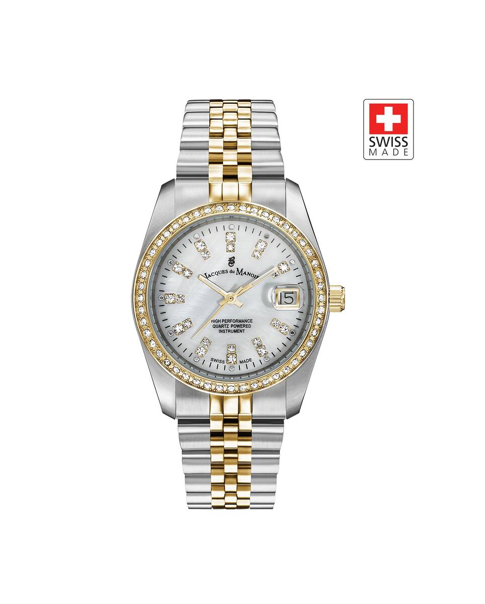 Kasa Çapı: 36 mm - Kasa Şekli: Yuvarlak - Kasa Materyali: Çelik - Kasa Rengi: Metalik Gri - Kordon Materyali: Çelik - Kordon Rengi: Metalik Gri/Altın Rengi- Kadran Rengi: Beyaz - Kadran Işığı: Yok - Taş: Var - Çalışma Şekli: Analog - Teknolojisi: Quartz - Takvim: Var - Kronometre: Yok - Alarm: Yok - Cam Özelliği: Mineral - Özellik: Swiss Made - Su Geçirmezlik: 5 Atm - Garanti Süresi: 2 yıl - Cinsiyet: Kadın