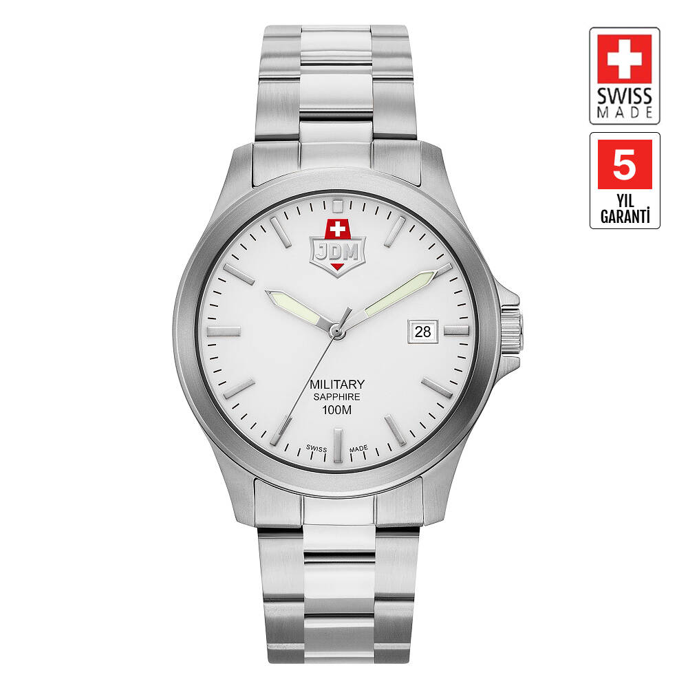 Kasa Çapı: 40 mm - Kasa Şekli: Yuvarlak - Kasa Materyali: Çelik - Kasa Rengi: Metalik Gri - Kordon Materyali: Çelik - Kordon Rengi: Metalik Gri- Kadran Rengi: Beyaz - Kadran Işığı: Yok - Taş: Yok - Çalışma Şekli: Analog - Teknolojisi: Quartz - Takvim: Var - Kronometre: Yok - Alarm: Yok - Cam Özelliği: Safir - Özellik: Swiss Made - Su Geçirmezlik: 10 Atm - Garanti Süresi: 5 YIL - Cinsiyet: Erkek