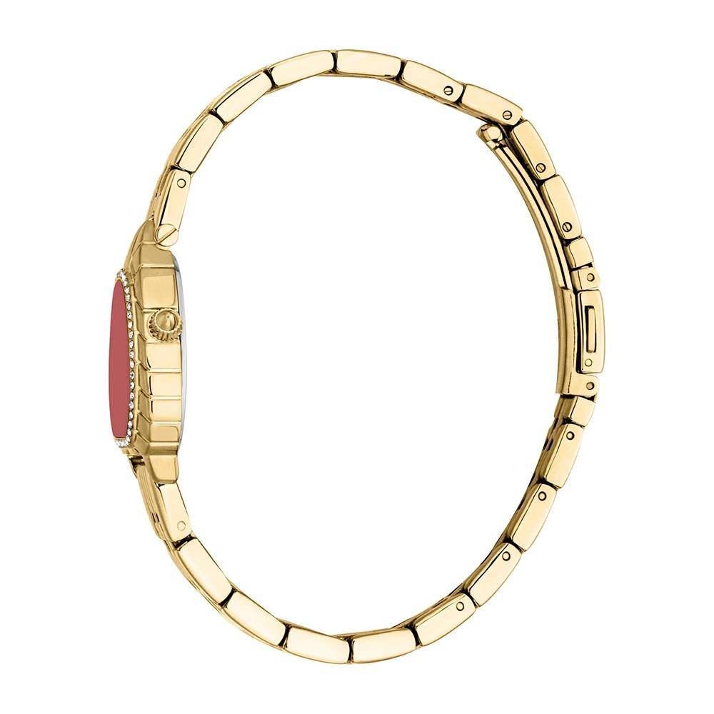 Kasa Çapı: 24 mm - Kasa Şekli: Oval - Kasa Materyali: Çelik - Kasa Rengi: Altın - Kordon Materyali: Çelik - Kordon Rengi: Altın- Kadran Rengi: Kırmızı - Kadran Işığı: Yok - Taş: Var - Çalışma Şekli: Analog - Teknolojisi: Quartz - Takvim: Yok - Kronometre: Yok - Alarm: Yok - Cam Özelliği: Mineral - Özellik: Kordon Uzunluğu: 18 cm - Kordon Genişliği: 12 mm - Kasa Yüksekliği: 7 mm - Ağırlık: 51 gr - Su Geçirmezlik: 3 ATM - Garanti Süresi: 2 YIL - Cinsiyet: Kadın