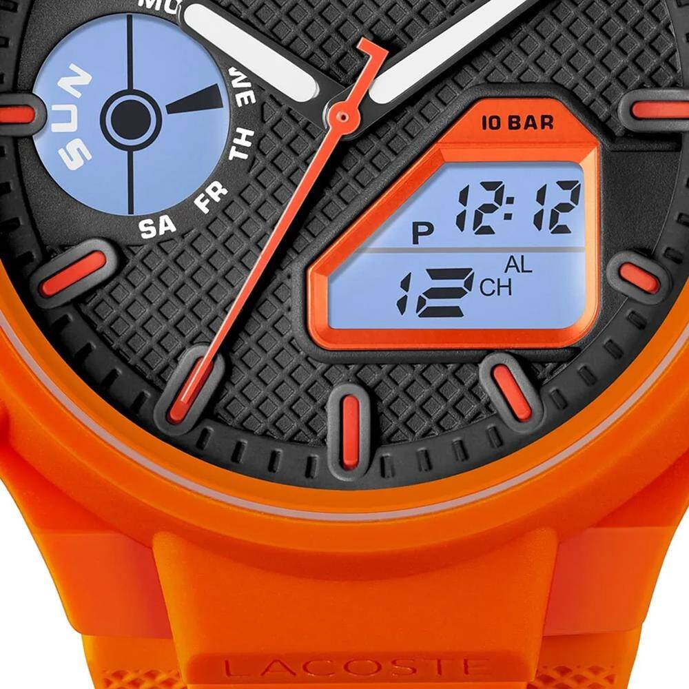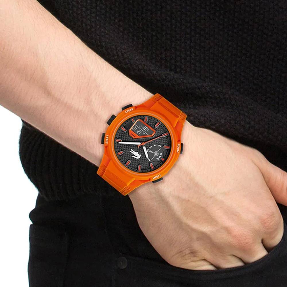Kasa Çapı: 44 mm - Kasa Şekli: Yuvarlak - Kasa Materyali: Çelik / Plastik - Kasa Rengi: Turuncu - Kordon Materyali: Silikon - Kordon Rengi: Turuncu- Kadran Rengi: Siyah - Kadran Işığı: Var - Taş: Yok - Çalışma Şekli: Analog / Dijital - Teknolojisi: Quartz - Takvim: Var - Kronometre: Var - Alarm: Var - Cam Özelliği: Mineral - Özellik: Ağırlık: 62 Gr - Kordon Uzunluğu: 20 cm - Kordon Genişliği: 26 mm - Su Geçirmezlik: 10 ATM - Garanti Süresi: 2 YIL - Cinsiyet: Erkek