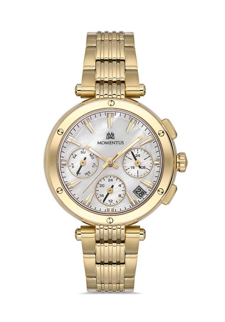 Kasa Çapı: 36 mm - Kasa Şekli: Yuvarlak - Kasa Materyali: Paslanmaz Çelik - Kasa Rengi: Gold - Kordon Materyali: Paslanmaz Çelik - Kordon Rengi: Gold- Kadran Rengi: Sedefli - Beyaz - Kasa Kalınlık: 10.9 mm - Kordon Genişliği: 16 mm - Kordon Kilit: Kelebek Klips - Teknolojisi: Quartz - Takvim: Tarih & Gün - Kronometre: Yok - Cam Şekli: Düz - Cam Özelliği: Mineral - Koleksiyon: ShinyStar Collection - Su Geçirmezlik: 5 ATM - Garanti Süresi: 2 Yıl - Cinsiyet: Kadın
