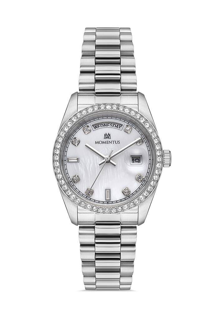 Kasa Çapı: 34.5 mm - Kasa Şekli: Yuvarlak - Kasa Materyali: Paslanmaz Çelik - Kasa Rengi: Çelik - Kordon Materyali: Paslanmaz Çelik - Kordon Rengi: Çelik- Kadran Rengi: Sedefli - Beyaz - Kasa Kalınlık: 10.1 mm - Kordon Genişliği: 19 mm - Kordon Kilit: Kilitli Klips - Teknolojisi: Quartz - Takvim: Tarih & Gün - Kronometre: Yok - Cam Şekli: Kesme - Cam Özelliği: Mineral - Koleksiyon: ShinyStar Collection - Su Geçirmezlik: 3 ATM - Garanti Süresi: 2 Yıl - Cinsiyet: Kadın