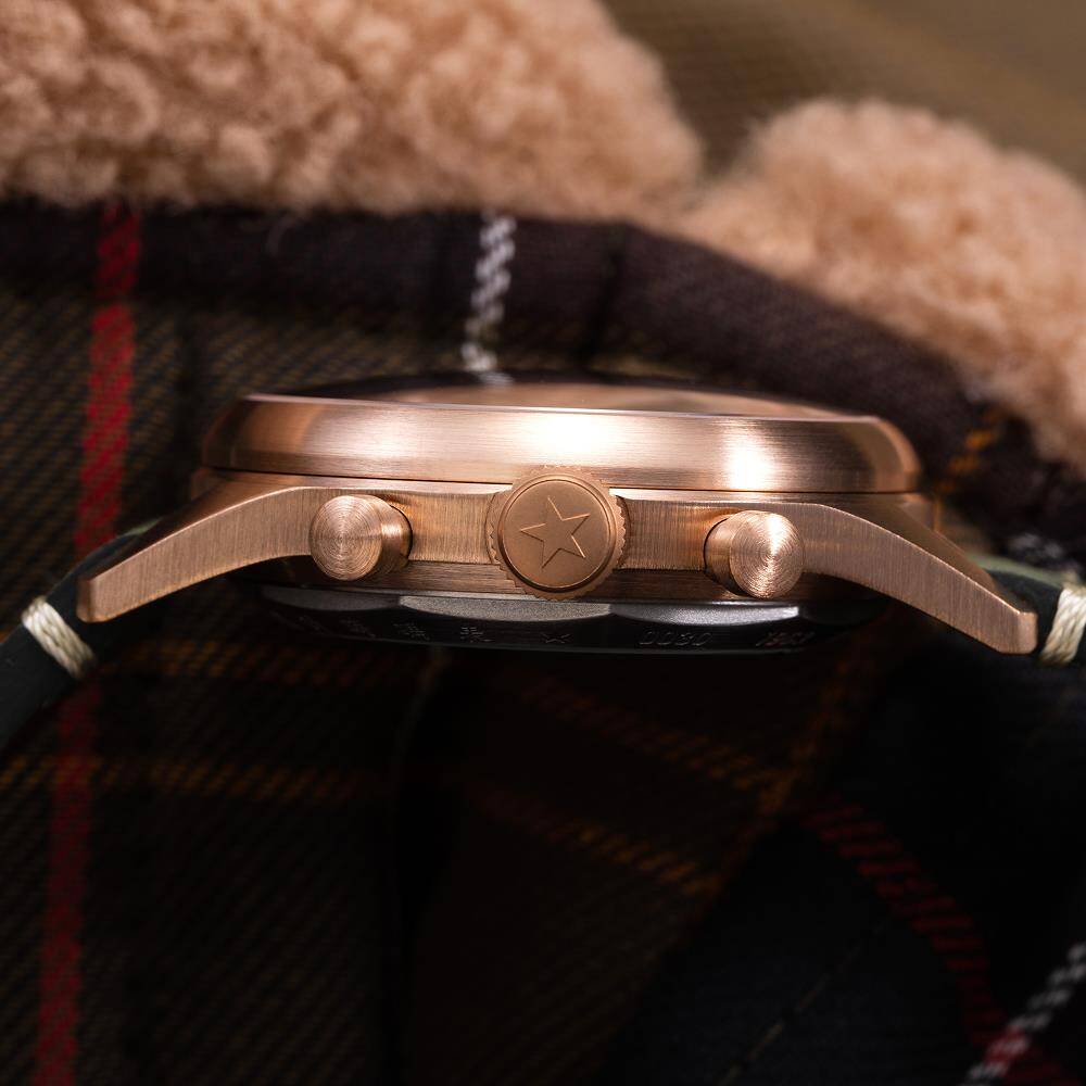 Kasa Çapı: 40 mm - Kasa Şekli: Yuvarlak - Kasa Materyali: Bronz - Kasa Rengi: Bronz - Kordon Materyali: Deri - Kordon Rengi: Yeşil- Kadran Rengi: Yeşil - Kadran Işığı: Yok - Taş: Yok - Çalışma Şekli: Analog - Teknolojisi: Kurmalı - Takvim: Yok - Kronometre: Var - Alarm: Yok - Cam Özelliği: Safir - Özellik: Kasa Kalınlığı: 14 mm - Yaklaşık Güç Rezervi: 38-40 Saat - Su Geçirmezlik: 5 ATM - Garanti Süresi: 2 YIL - Cinsiyet: Erkek