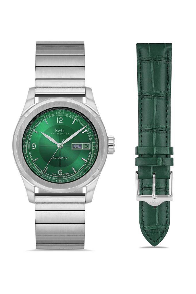 RENK: YEŞİL - KAPLAMA: GÜMÜŞ - KADRAN RENGİ: YEŞİL - KORDON: PASLANMAZ MASİF ÇELİK - FONSKİYON: OTOMATİK - CAM ÖZELLİĞİ: SERTLEŞTİRİLMİŞ MİNERAL CAM - SU GEÇİRMEZLİK: 5 ATM - GARANTİ SÜRESİ: 2 YIL - CİNSİYET: ERKEK