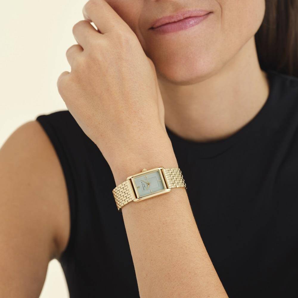 Kasa Çapı: 23.5x30.6 mm - Kasa Şekli: Dikdörtgen - Kasa Materyali: Pirinç - Kasa Rengi: Altın - Kordon Materyali: Çelik - Kordon Rengi: Altın- Kadran Rengi: Turkuaz - Kadran Işığı: Yok - Taş: Yok - Çalışma Şekli: Analog - Teknolojisi: Quartz - Takvim: Yok - Kronometre: Yok - Alarm: Yok - Cam Özelliği: Mineral - Özellik: - Su Geçirmezlik: 3 ATM - Garanti Süresi: 2 YIL - Cinsiyet: Kadın