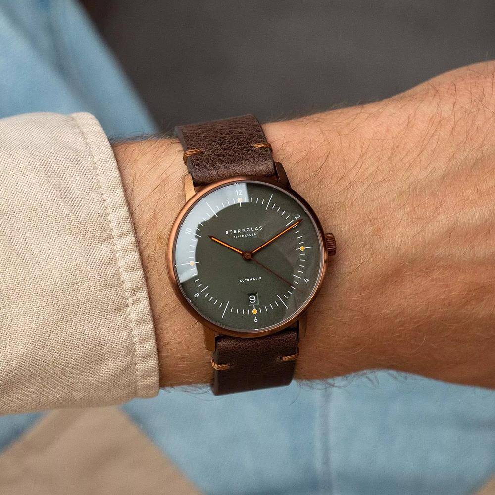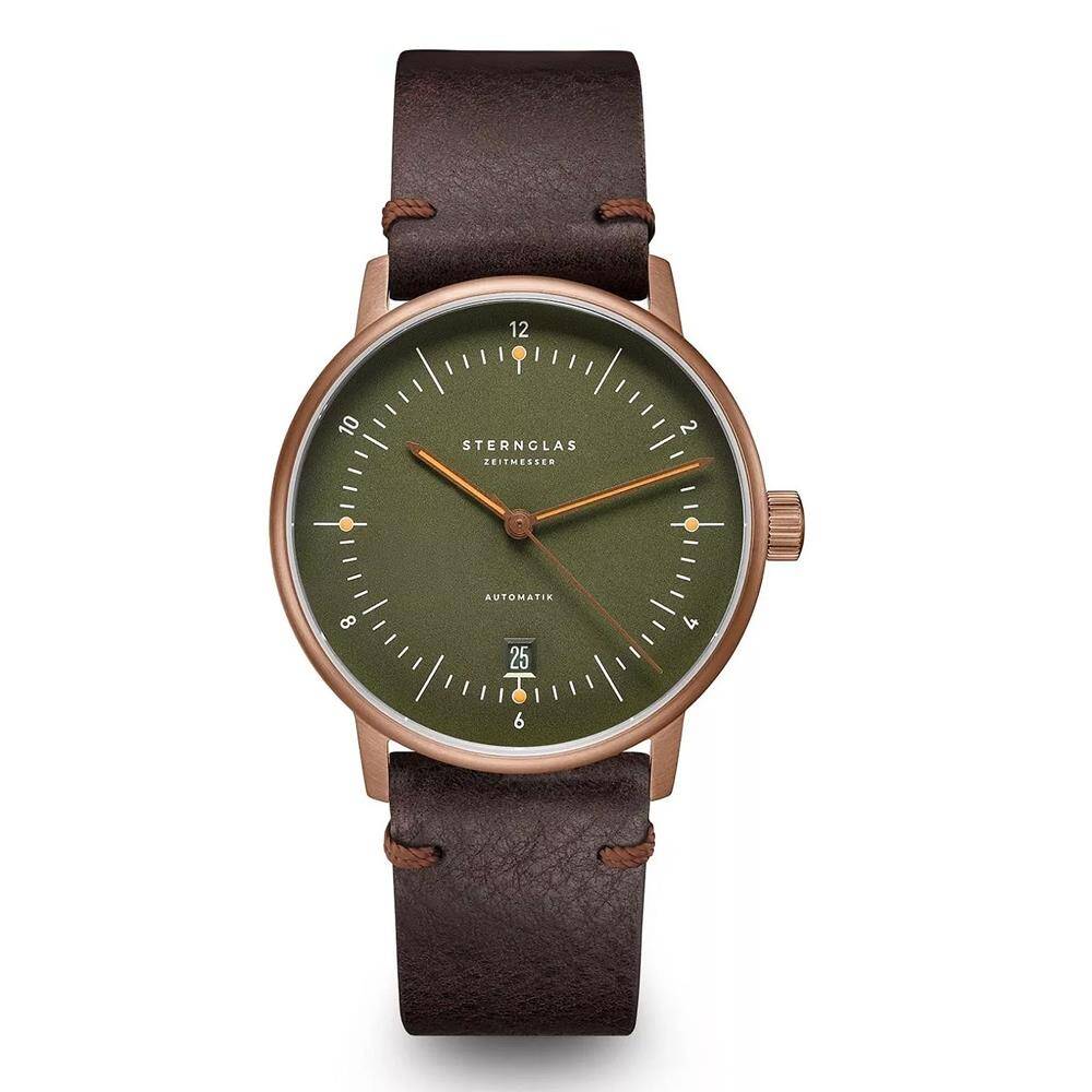 Kasa Çapı: 38 mm - Kasa Şekli: Yuvarlak - Kasa Materyali: Çelik - Kasa Rengi: Bronz - Kordon Materyali: Deri - Kordon Rengi: Kahverengi- Kadran Rengi: Yeşil - Kadran Işığı: Yok - Taş: Yok - Çalışma Şekli: Analog - Teknolojisi: Otomatik - Takvim: Var - Kronometre: Yok - Alarm: Yok - Cam Özelliği: Safir - Özellik: Kasa Kalınlığı: 12 mm - Kayış Genişliği: 20 mm - Ağırlık: 60 Gr - Yaklaşık Güç Rezervi: 40-42 Saat - Su Geçirmezlik: 5 ATM - Garanti Süresi: 2 YIL - Cinsiyet: Erkek
